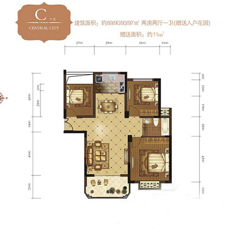 嘉凯中央城2室2厅1卫1厨